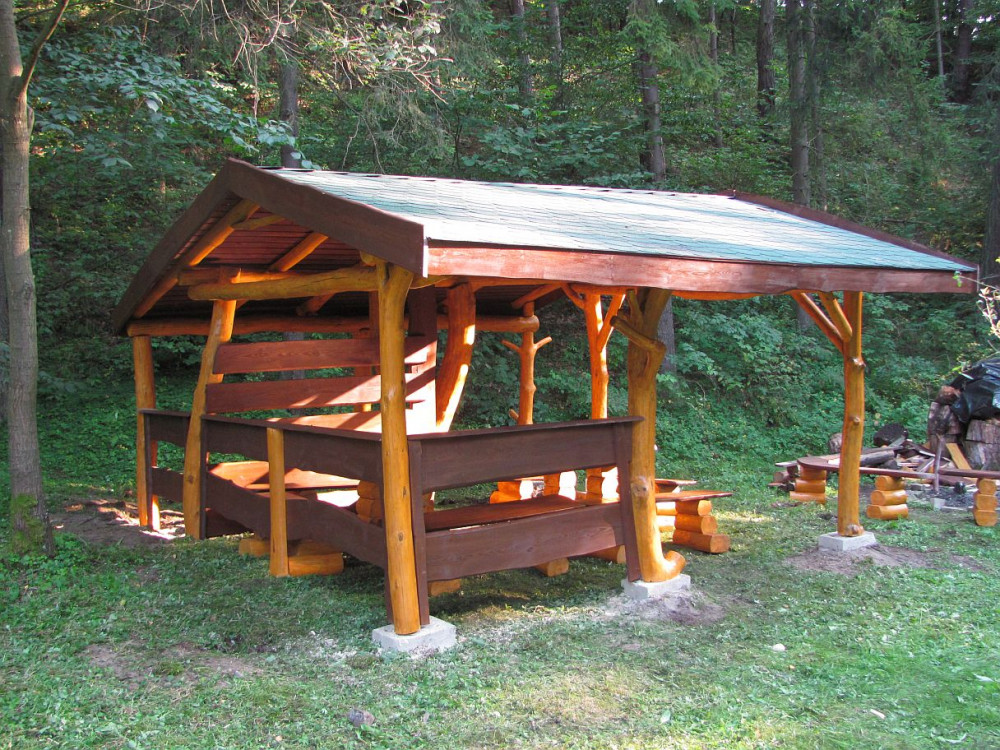 7. Miecze wspierające altanę wykonane z okrąglaków.