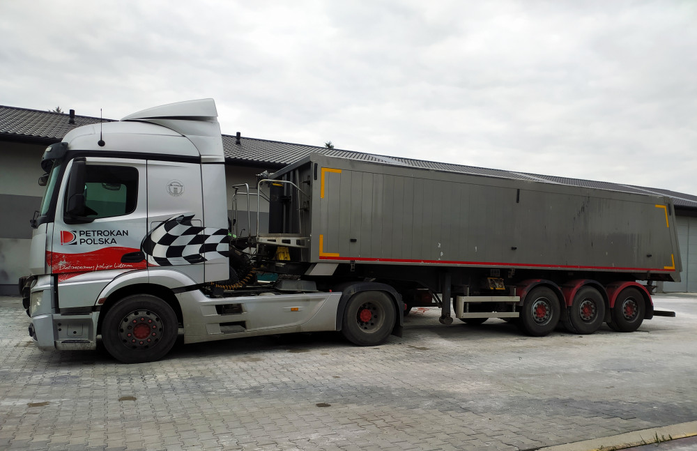 Transport materiałów sypkich wywrotką-gondolą 26t.