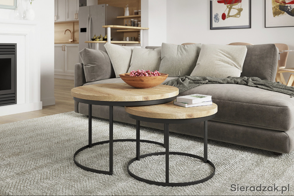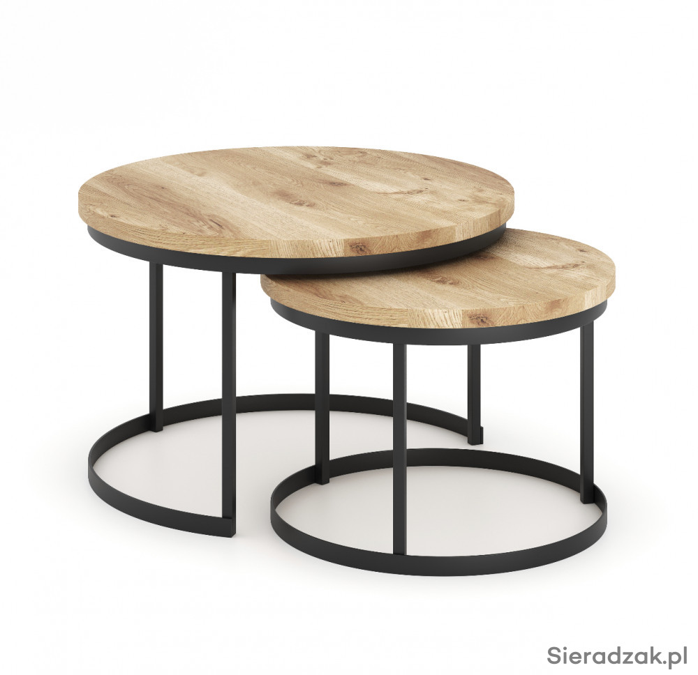 Stolik kawowy NATRA to połączenie nowoczesnego stylu i niezwykłej praktyczności. Zestaw składa się z dwóch różnej wielkości stolików, dzięki możliwości chowania jednego stolika pod drugi, zajmują przestrzeń jednej ławy, ale pozwalają na wykorzystanie powierzchni dwóch stolików przez co można zaoszczędzić dużo miejsca w salonie, jest to połączenie lekkości ze stabilnością. Pozbawiony ostrych kantów zapewnia bezpieczeństwo przy dzieciach. Dzięki wysokiej jakości materiałom użytym podczas produkcji, stolik posłuży przez długie lata. Blat jest wykonany z prawdziwego drzewa dębowego najwyższej jakości. Podstawa metalowa, jest malowana proszkowo w kolorze czarnym.