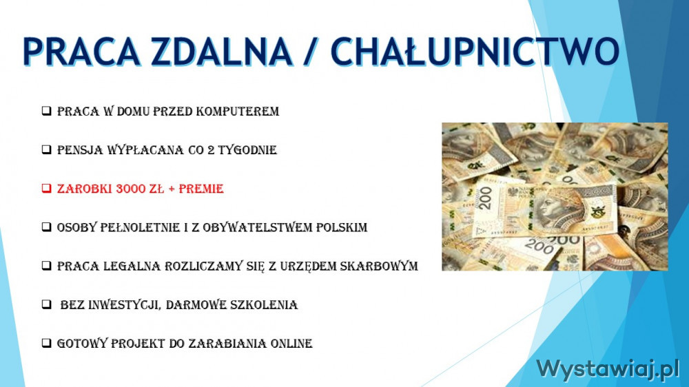 Nie tego szukasz? Przejrzyj inne oferty z tej kategorii (Rynek Pracy › Dam pracę › Praca dodatkowa). Możesz też zawsze przejść na stronę główną lub skorzystać z wyszukiwarki. ⊗