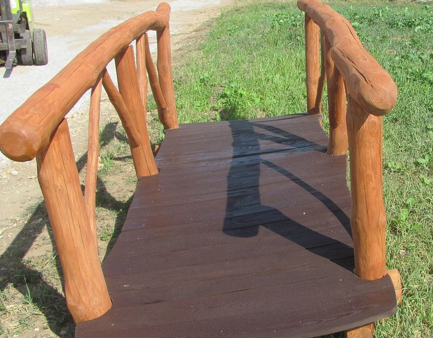 Mostki wykonane są z naturalnych bali drewnianych. Bale są sezonowane, korowane, szlifowane. Montaż mostka rozpoczynamy od odpowiedniego doboru materiału na łuki oraz poręcze, które mocowane są ze sobą za pomocą ocynkowanych śrub. Łuki mają rozstaw między 90-95 cm wewnątrz , podest 125-130 cm na zewnątrz. Wykonujemy mostki o standardowych długościach, których ceny znajdują się w cenniku oraz mostki dostosowane do potrzeb klienta. Następnie wykonujemy zdobienia poręczy oraz mocujemy deski podestu, których grubość wynosi 30 mm. Gotowy mostek jest dwukrotnie impregnowany Drewnochronem.