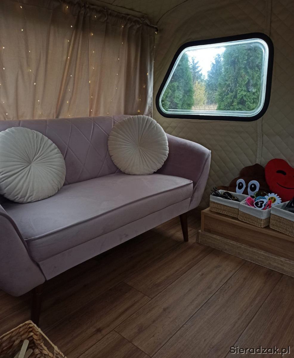 Fotoprzyczepa to alternatywa tradycyjnej FotoBudki, czyli przyczepa kempingowa Niewiadów n126. Znajduje się w niej profesjonalny sprzęt do robienia zdjęć, wygodna kanapa, gadżety tematyczne oraz dodatki uzupełniające wystrój przyczepy.