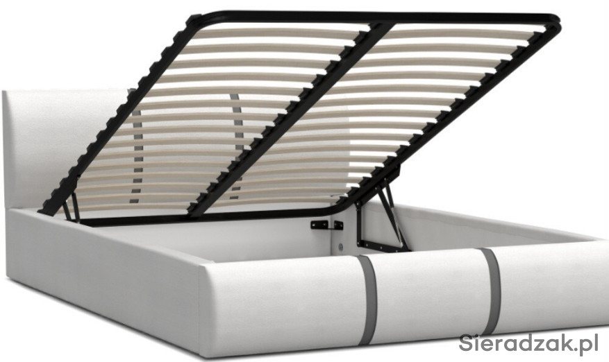 Aby zyskać na funkcjonalności łóżka, dodaliśmy do niego podnoszony stelaż. Dwa siłowniki gazowe ułatwiają jego podnoszenie, nie trzeba użyć dużo siły, aby go unieść.Rozstaw listew wstelażu jest odpowiedni, aby materac na nim leżący miał zapewnioną właściwą wentylację, aprzy okazji nie uległ odkształceniu. Dzięki temu nie osadza się wnim ani wilgoć czy roztocza imożemy cieszyć się higienicznymi warunkami snu podczas każdej nocy. Sprężynujące listwy umieszczone wspecjalnych uchwytach pracują wraz zmateracem, co dodatkowo korzystnie wpływa na wygodę. Wykonano je wtaki sposób, aby nie rozwarstwiały się inie niszczyły oraz służyły przez wiele lat.