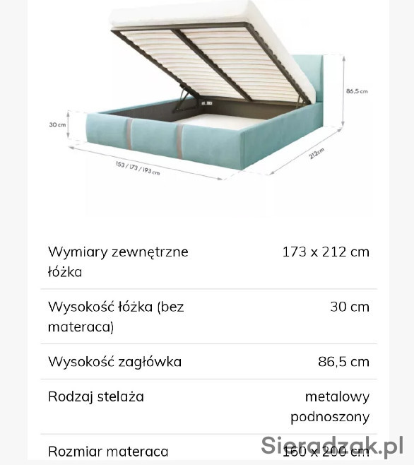 Podnoszony stelaż metalowy- Stelaż wspierany jest mechanizmem podnoszenia - dwa siłowniki gazowe. Posiada brzozowe sprężynujące listwy