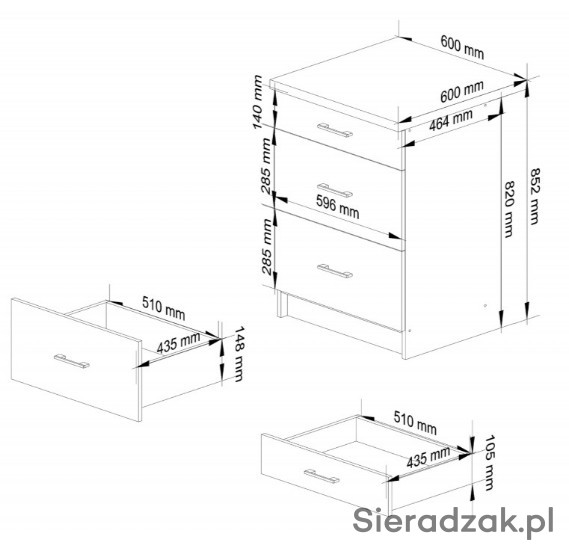 5.SZAFKA KUCHENNA OLIWIA S 60cm 3S BIAŁA POŁYSK - 1SZT.