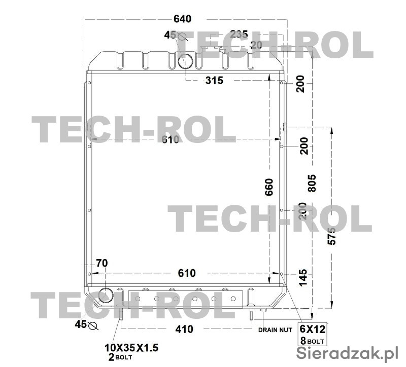 Chłodnica wody 5-rzędowa miedziana, mocowanie dolne