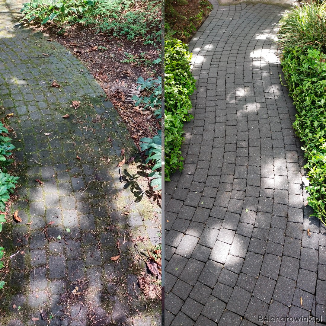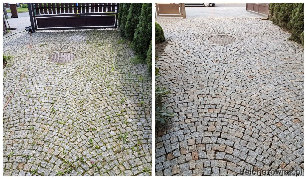 - mycie i czyszczenie kostki brukowej oraz granitowej (glony, porosty, mchy, chwasty i inne zabrudzenia). Do czyszczenia kostki używamy talerza myjącego