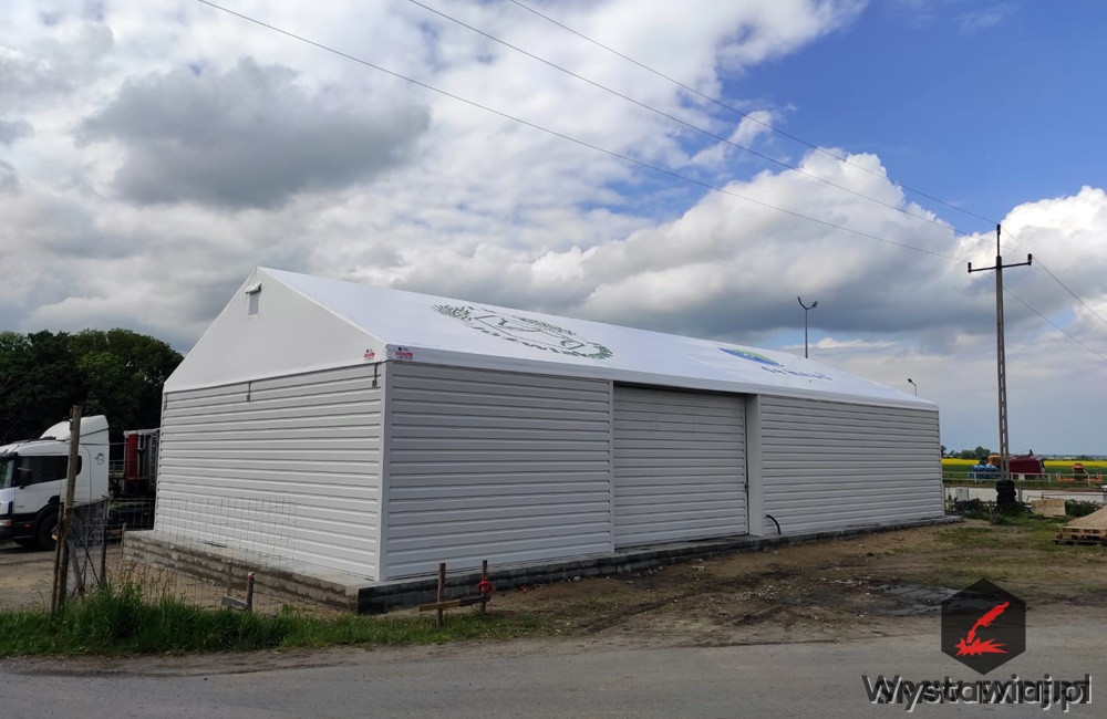 Konstrukcja stalowa jest zabezpieczona antykorozyjnie przez proces cynkowania ogniowego. Materiał dachowy to plandeka o gramaturze 680gr/m2, natomiast boki to blacha trapezowa T 18.