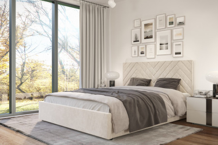 Łóżko BRAVO to model o wyjątkowym charakterze. Tapicerowane wezgłowie z ozdobnym wzorem jodełki przyciąga wzrok i nadaje wnętrzu niepowtarzalnego stylu.