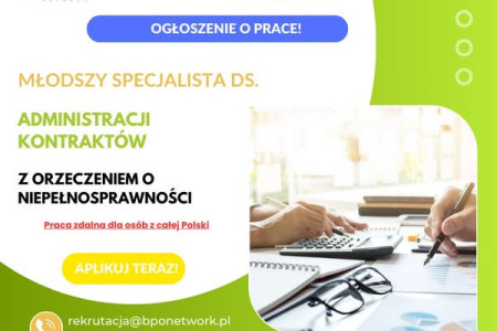 Młodszy Specjalista ds. Administracji Kontraktów z orzeczeniem o niepełnosprawności